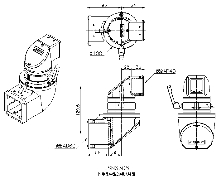 ESNS308 N字型中繼旋轉關節