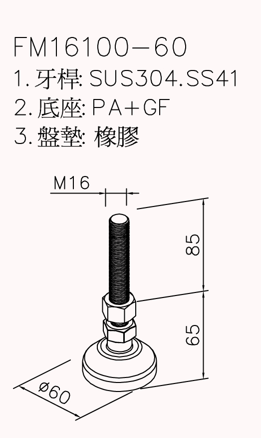 FM16100-60尼龍萬向腳座